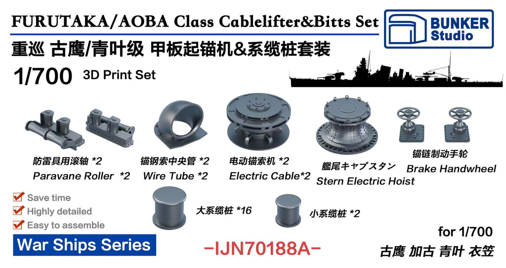 IJN70188A 1/700 IJN Furutaka Class Cablelifter&Bitts Set