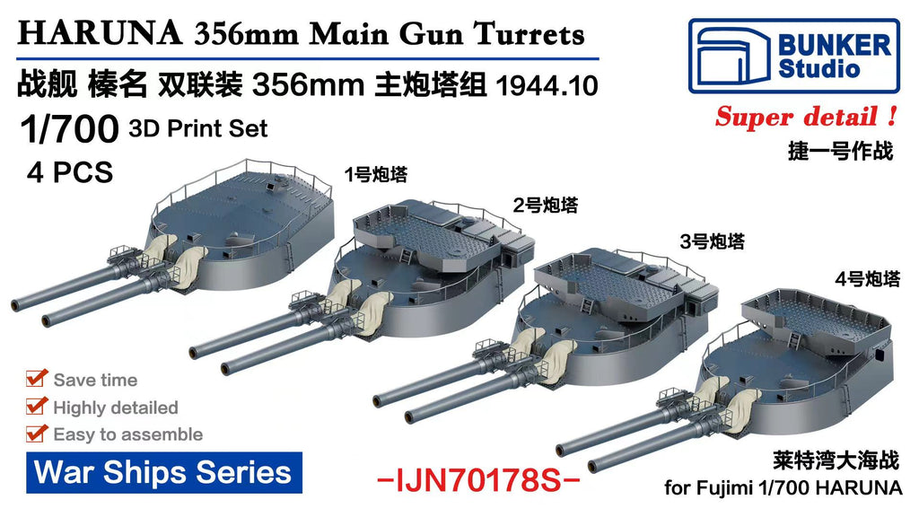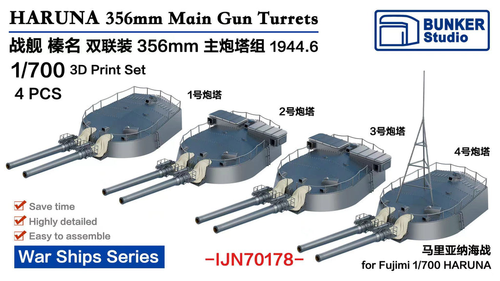 IJN70178S 1/700 IJN HARUNA 356mm Main Gun Turrets Set 1944.10