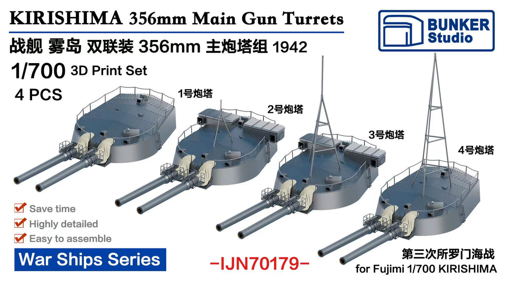 IJN70179 1/700 IJN KIRISHIMA 356mm Main Gun Turrets Set 1942