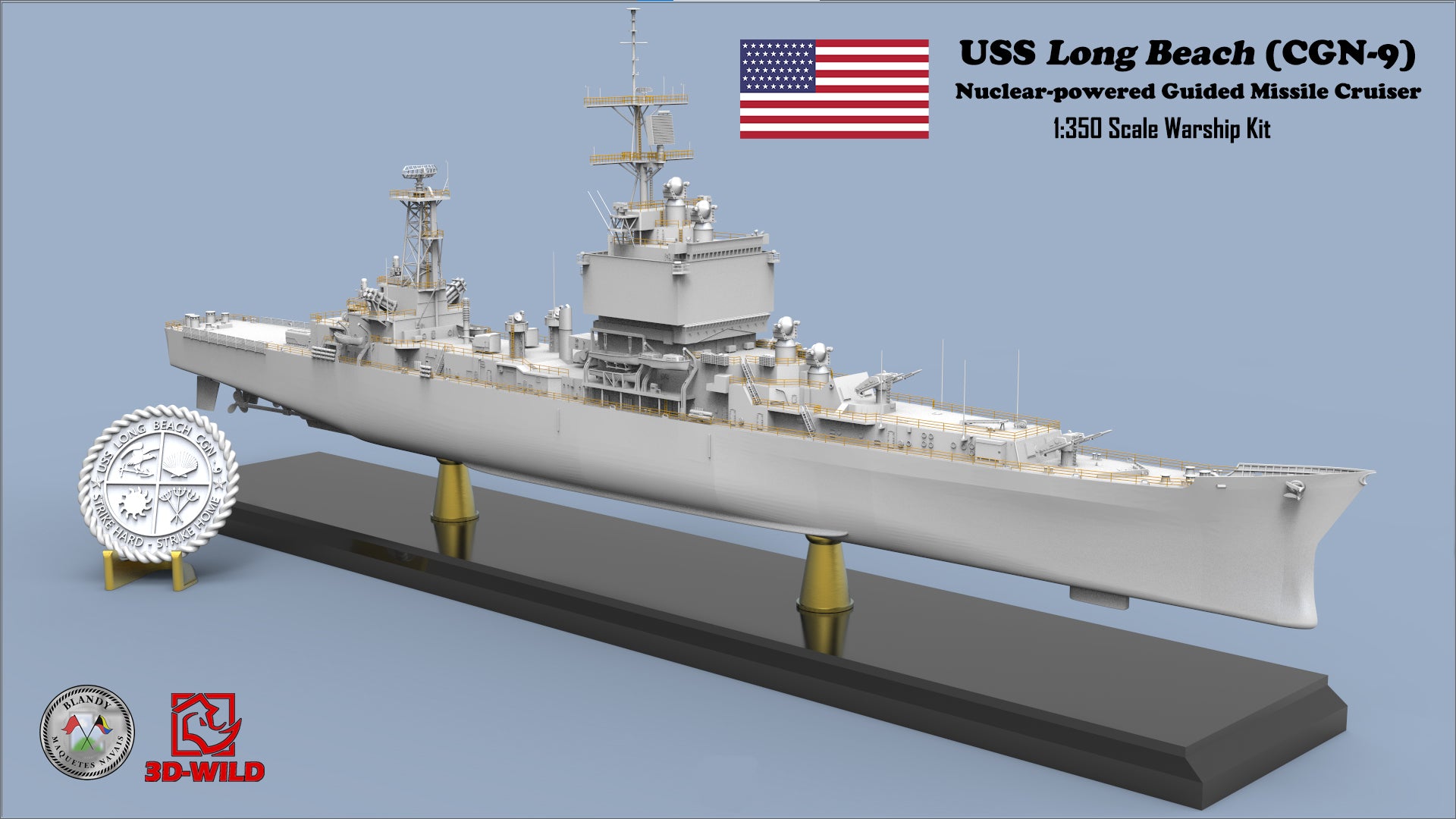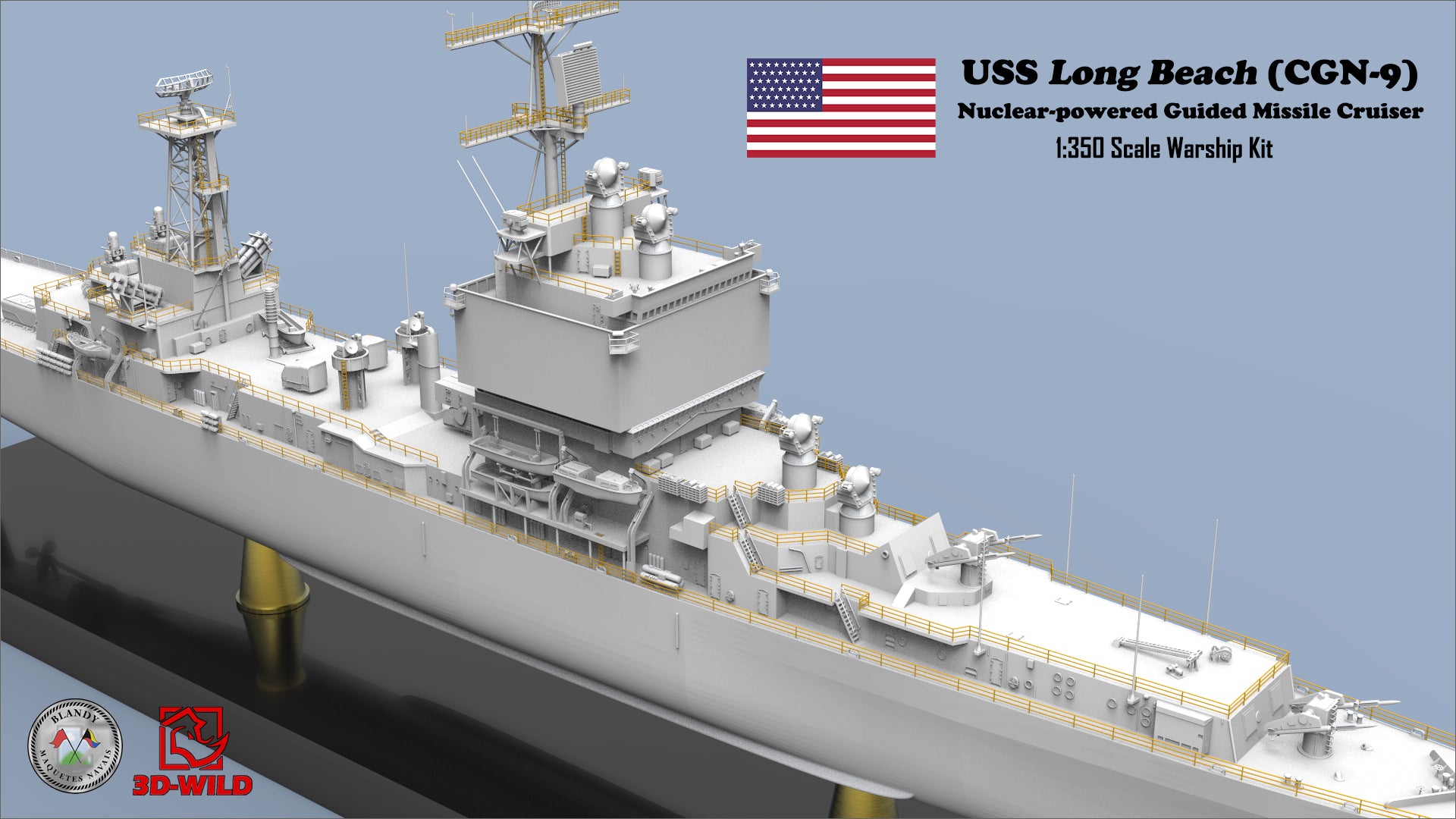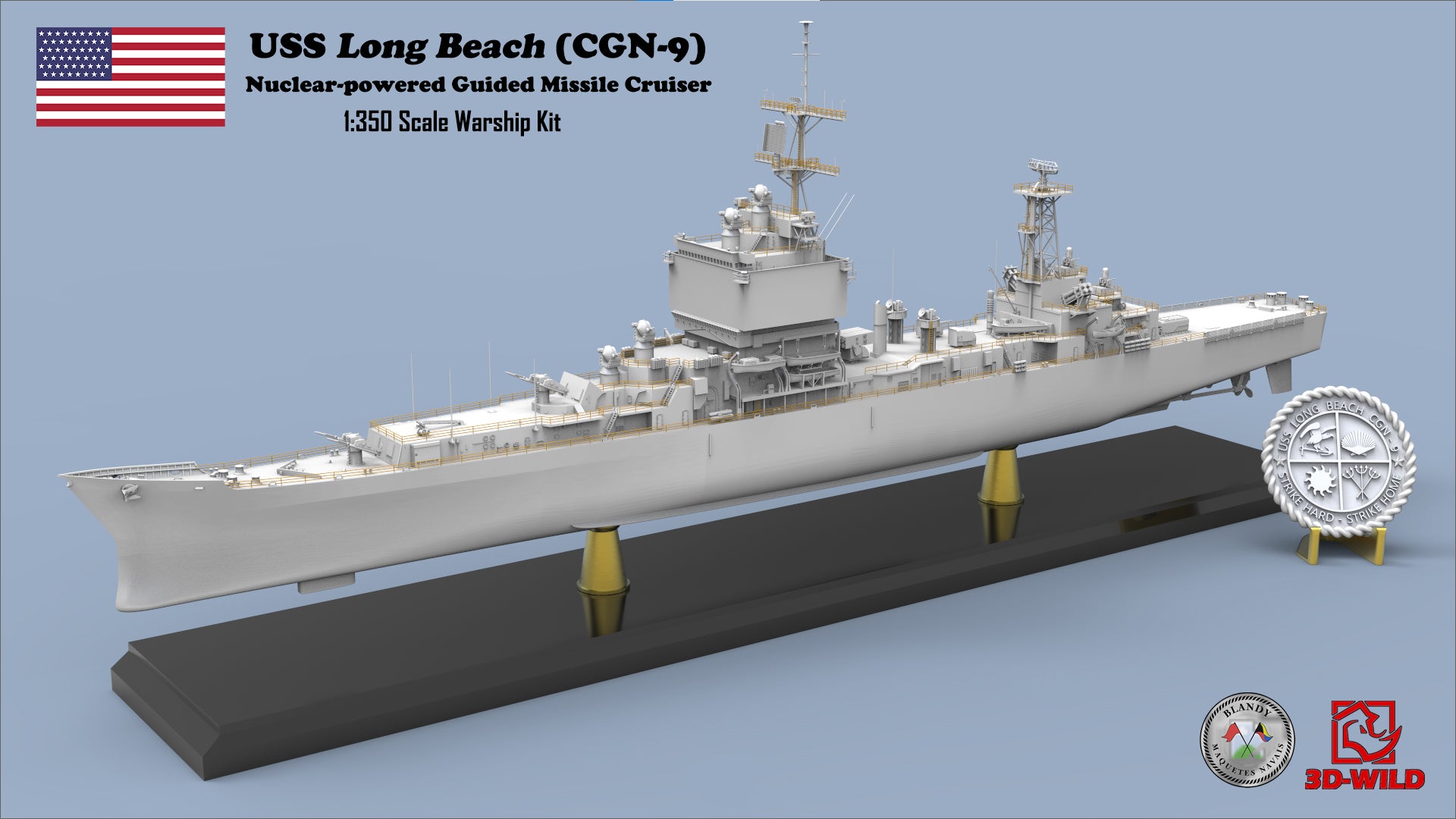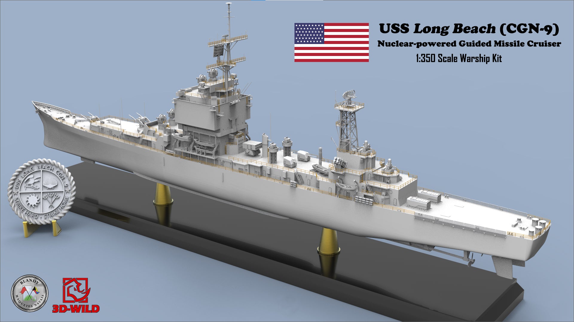 3D-WILD (USA) is proud to 1:350 USS Long Beach (CGN-9) Nuclear-powered Guided Missile Cruiser Model Kit! Thanks to our partner Blandy Maquetes Navais (Brazil) for the great design!! The model kit will be produced and distributed globally and exclusively by 3D-WILD LLC.