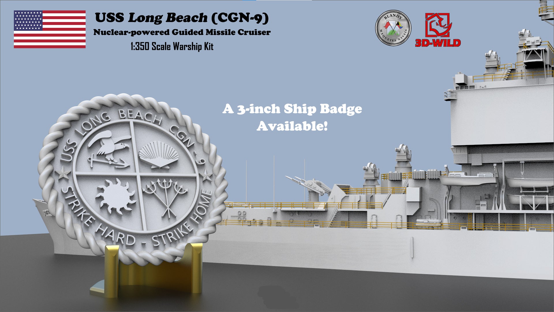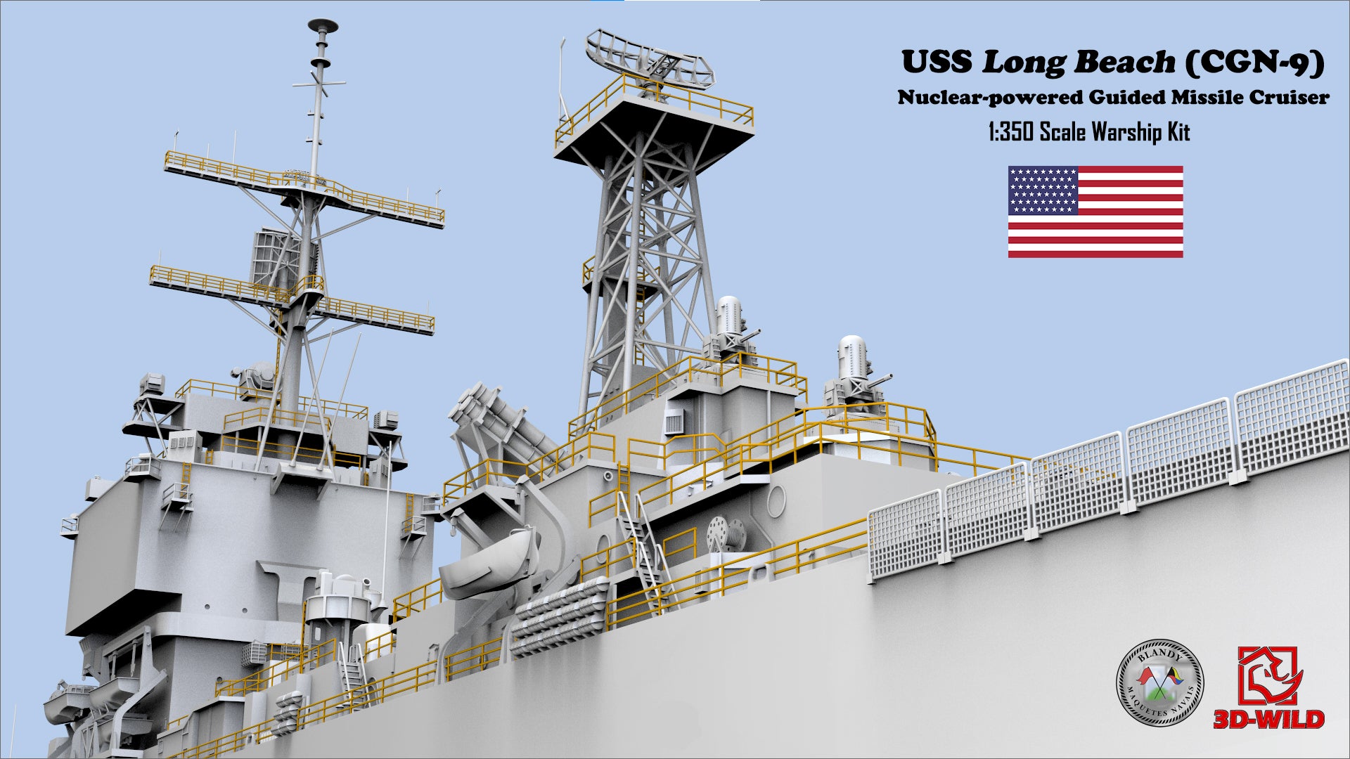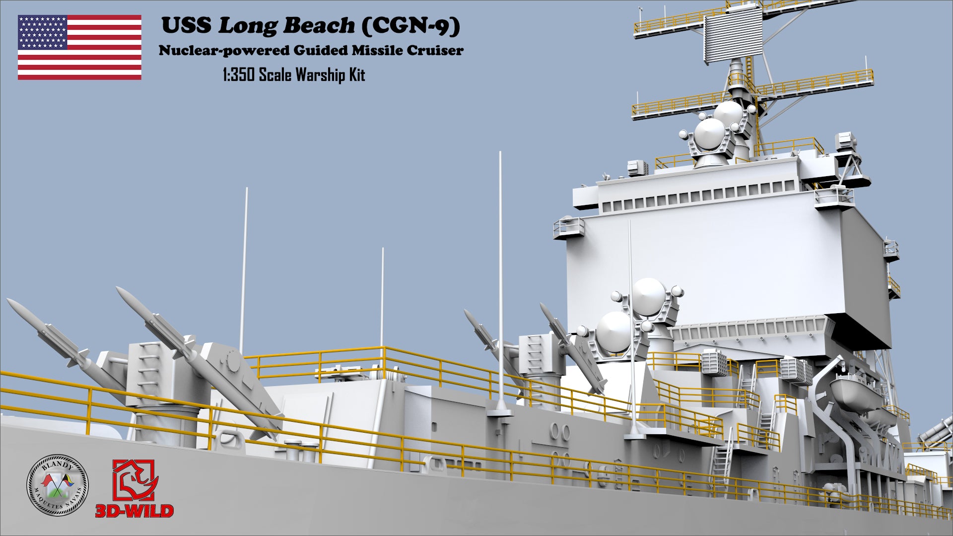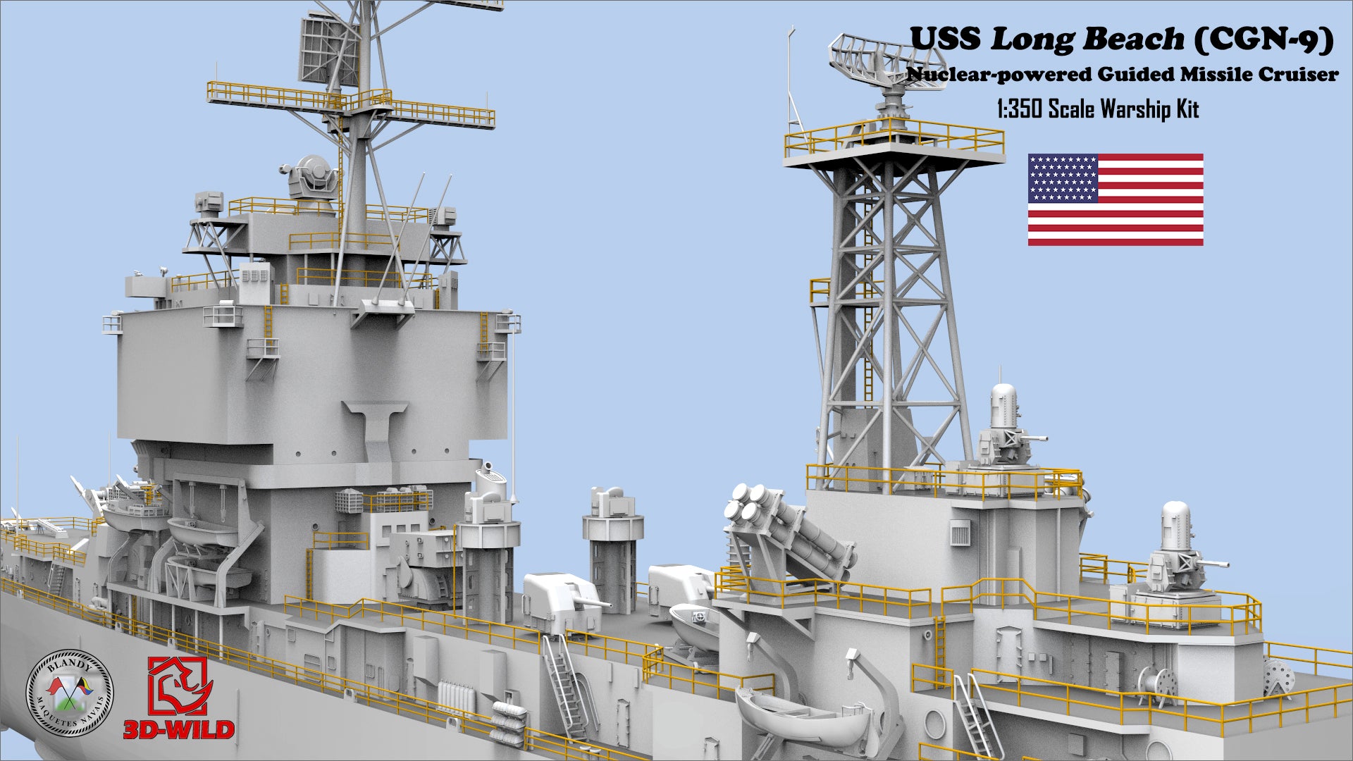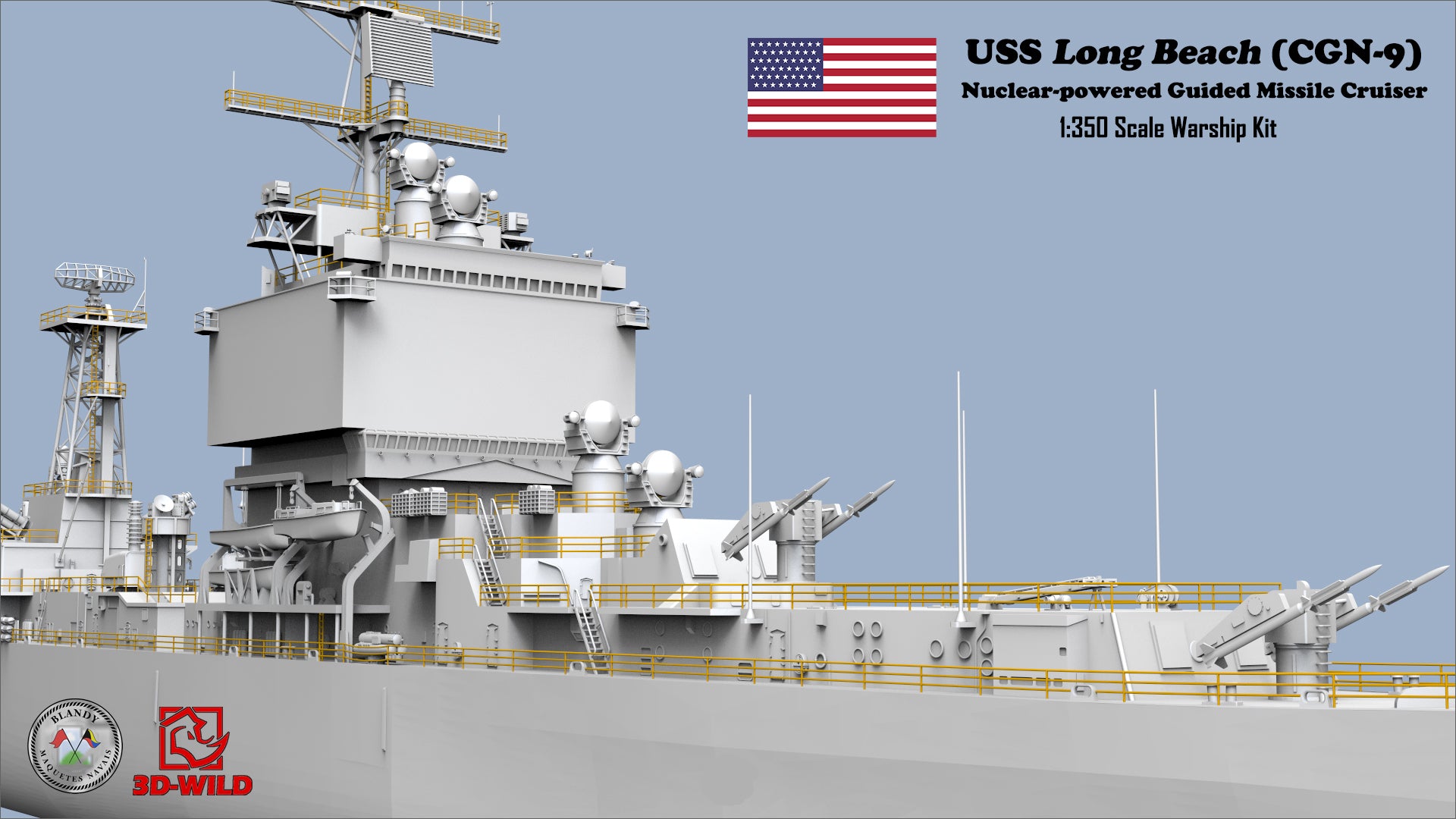 3D-WILD (USA) is proud to 1:350 USS Long Beach (CGN-9) Nuclear-powered Guided Missile Cruiser Model Kit! Thanks to our partner Blandy Maquetes Navais (Brazil) for the great design!! The model kit will be produced and distributed globally and exclusively by 3D-WILD LLC.
