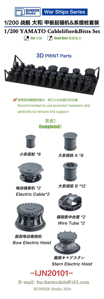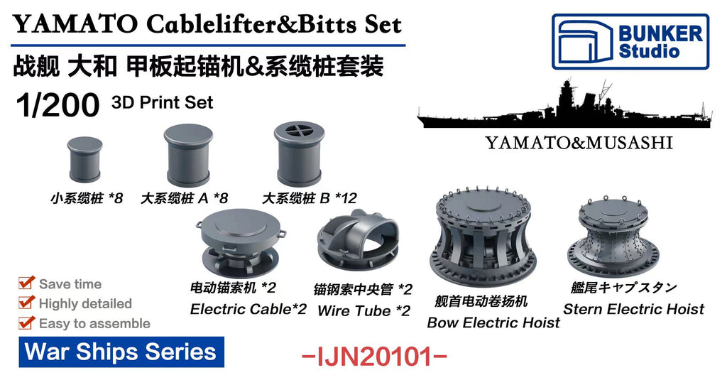 IJN20101 1/200 YAMATO Cablelifter&Bitts Set is backordered and will ship as soon as it is back in stock.