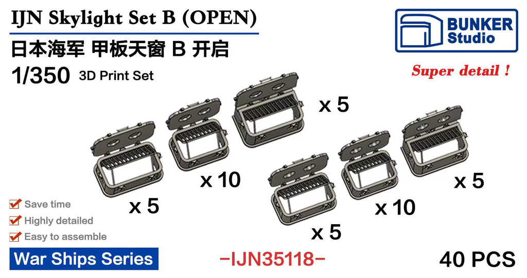 IJN35118 1/350 IJN Skylight Set B Open is backordered and will ship as soon as it is back in stock.