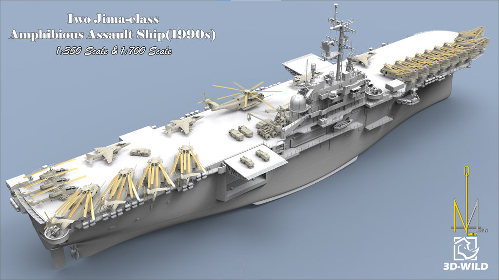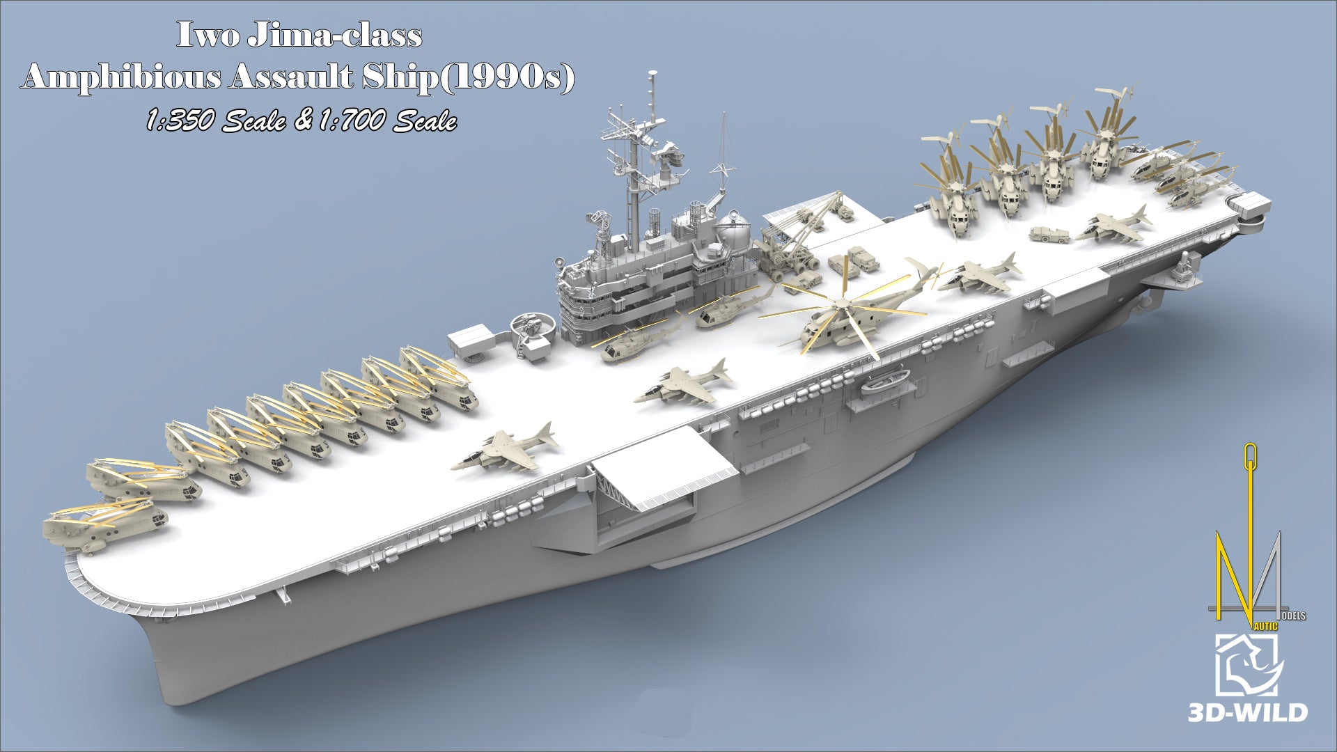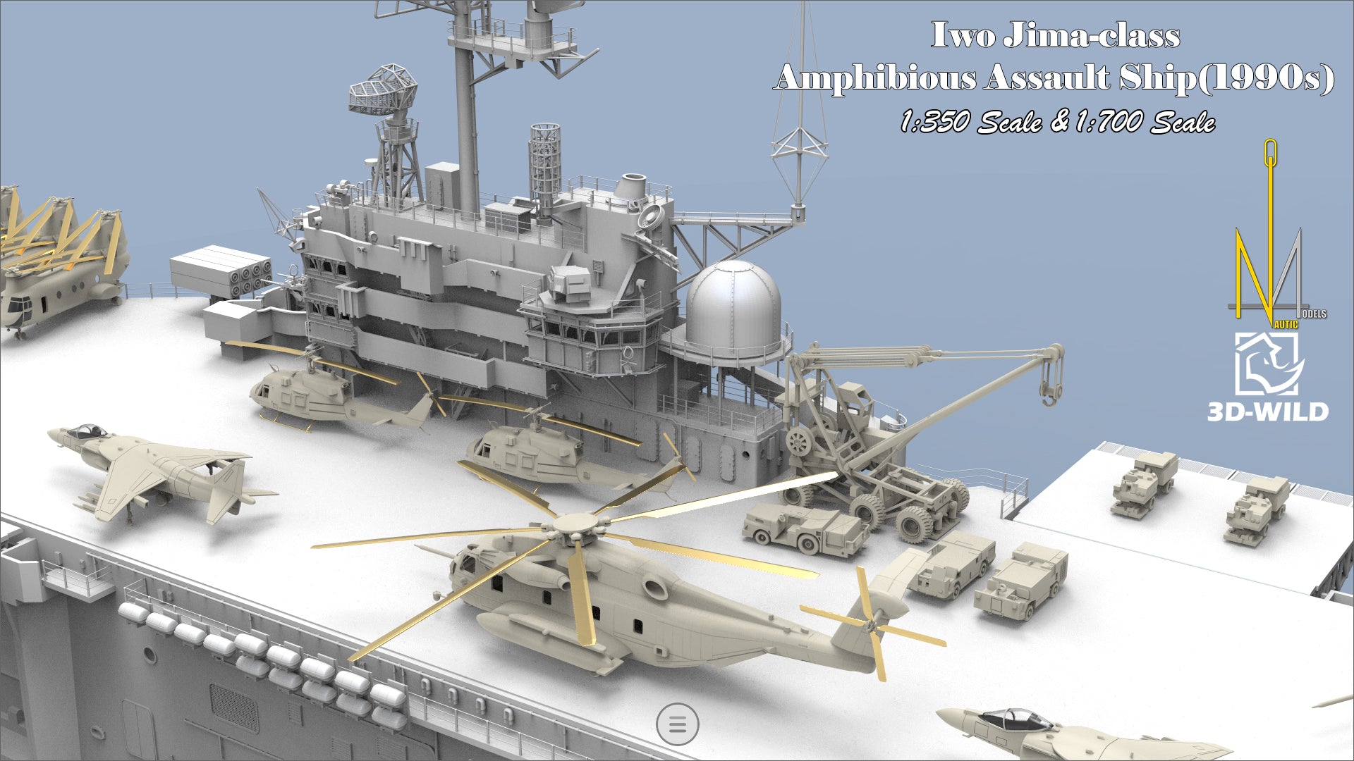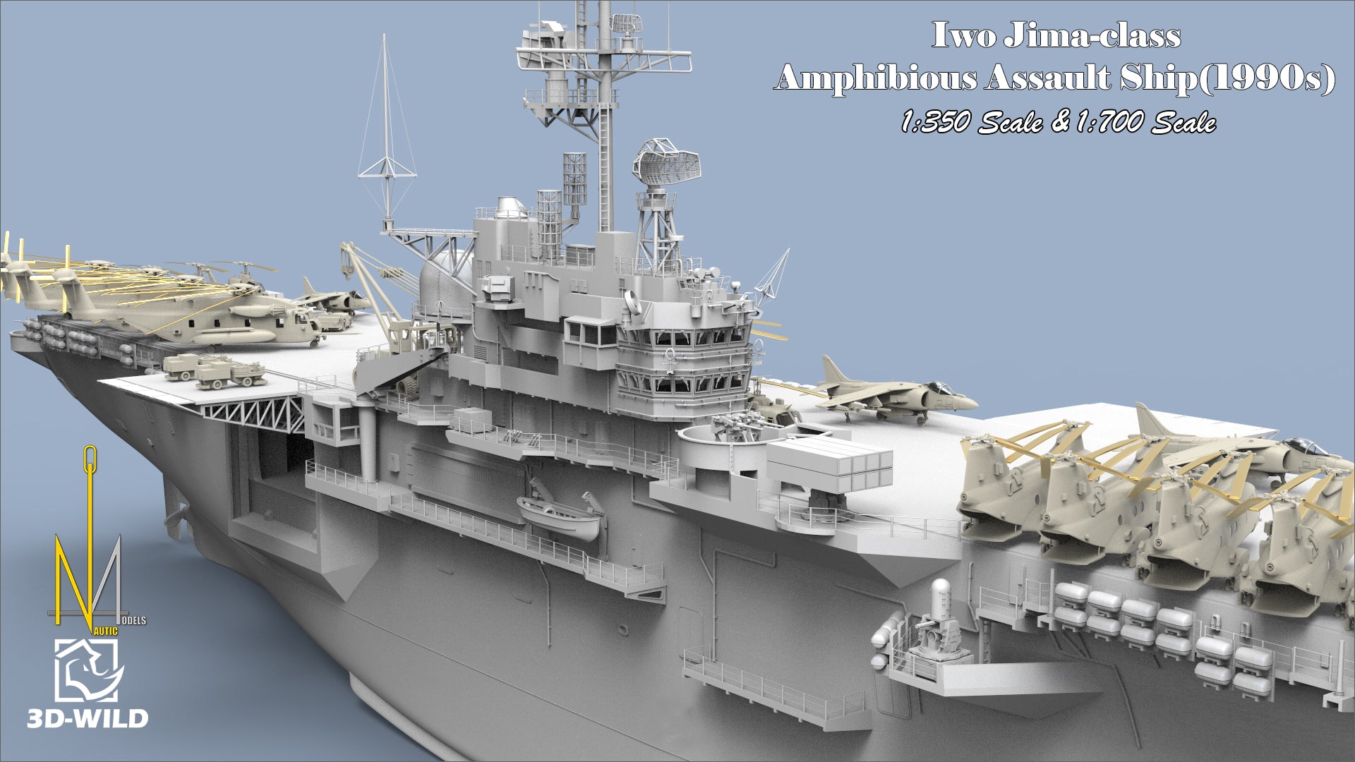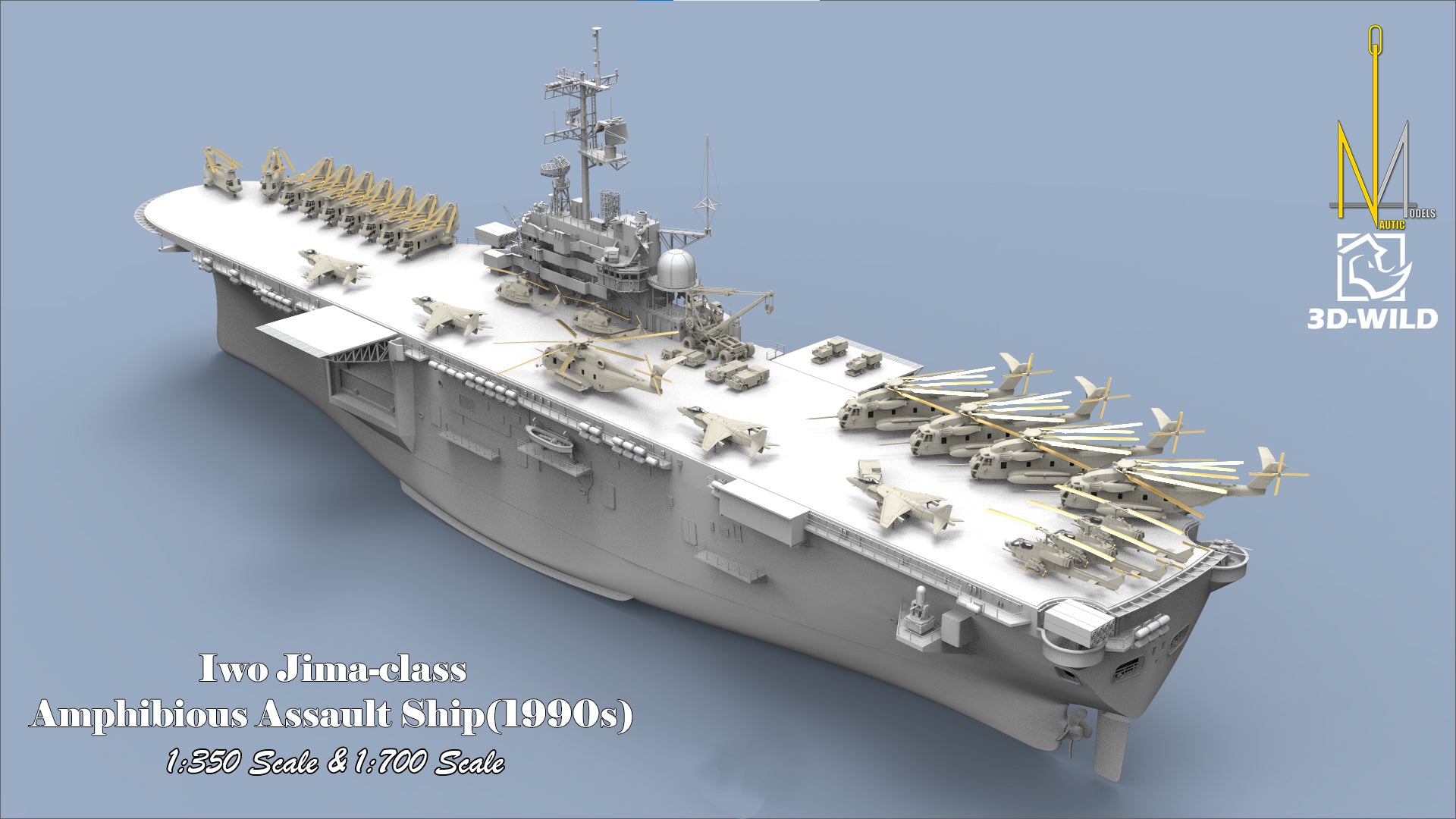 Together, 3D-WILD and Nautic Models are proud to announce the Iwo Jima-class LPH amphibious assault ships in both 1/350 and 1/700 scales, as they appeared in the 1990s around the Gulf War. Modelers can build the kit as USS Iwo Jima (LPH-2),