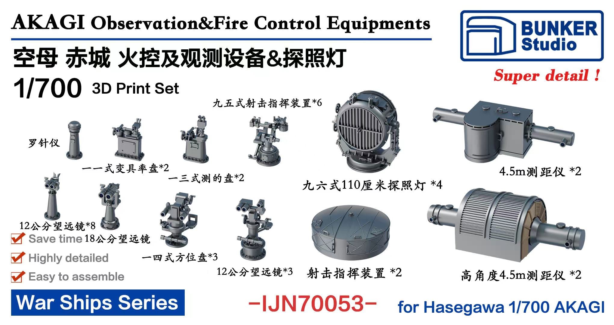 Super detailed 3D-print kit Set for 1/700 AKAGI