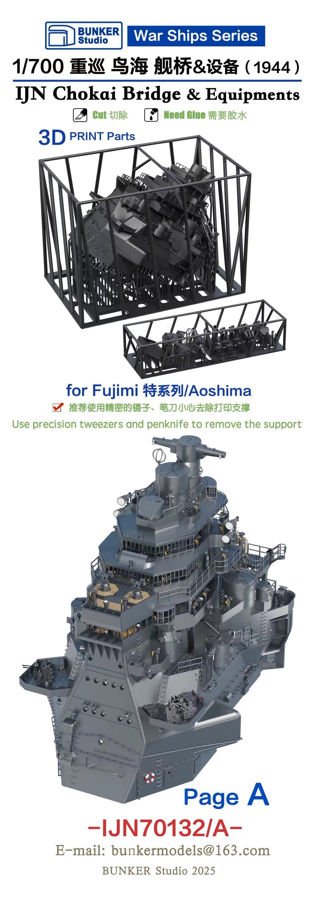 Super detailed 3D-print kit for 1/700 Chokai (1944) for Aoshima
