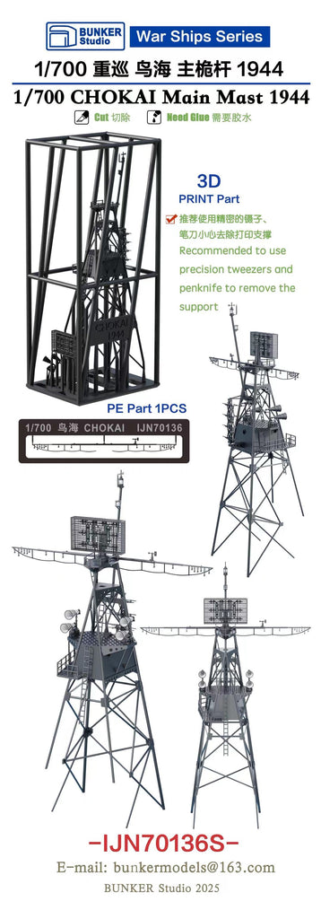 IJN70136S 1/700 IJN CHOKAI Main Mast 1944 is backordered and will ship as soon as it is back in stock.