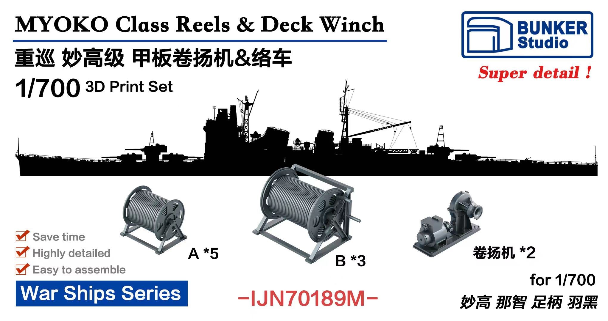 Super detailed 3D-print kit for 1/700 妙高 那智 足柄 羽黑